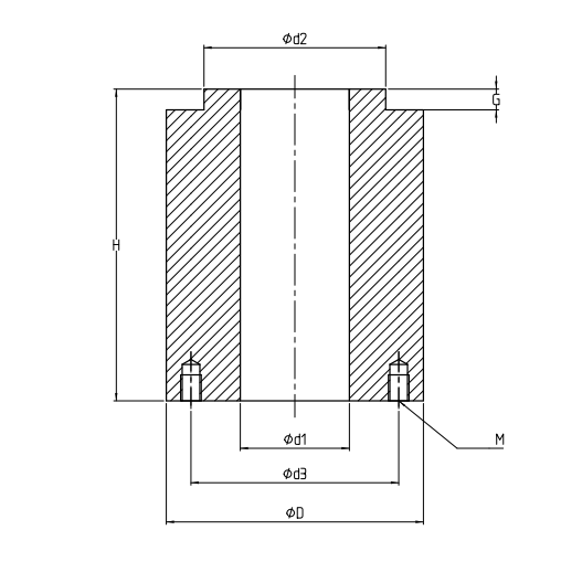 型號 | 量程(kN) | 量程(t) | d1 | d2 | d3 | D | G | H | M |
