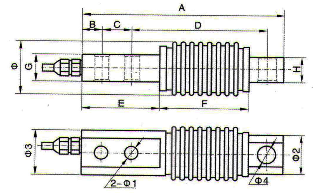 型號(hào) | 量程(kN) | 量程(kg) | A | B | C | D | E | F | G | H | ? | ?1 | ?2 | ?3 | ?4 |