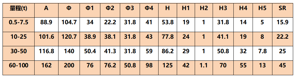 量程:5kN(500kg)10kN(1t)、20kN(2t)、50kN(5t)、100kN(10t)、200kN(20t)、250kN(25t)、