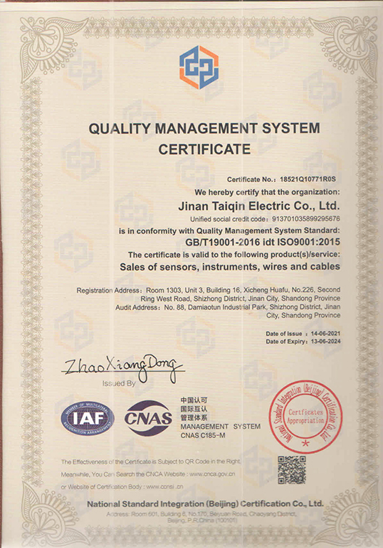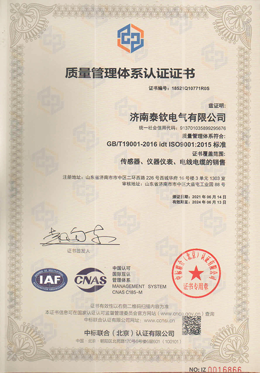 濟(jì)南泰欽傳感器,已通過ISO9001質(zhì)量體系認(rèn)證