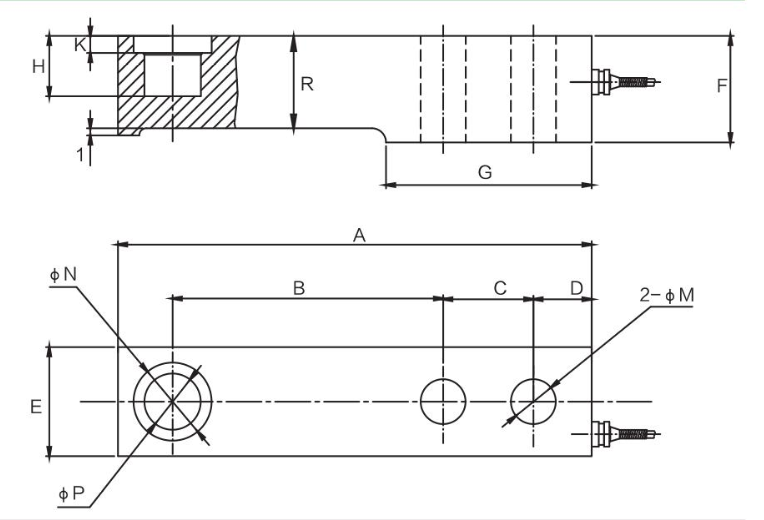 量程(kN) | 量程(t) | A | B | C | D | E | F | G | H | K | M | N | P | R | |