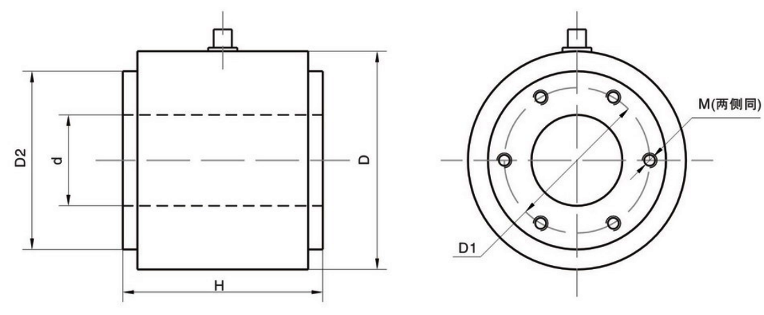 型號 量程(kN) 量程(t) D D1 D2 d H M TQ-H11 200 20 90 61 68 43 80 4-M6 500 50 130 93 108 65 110 6-M8 1000 100 160 113 128 85 110 6-M12 2000 200 220 170 190 120 120 6-M12